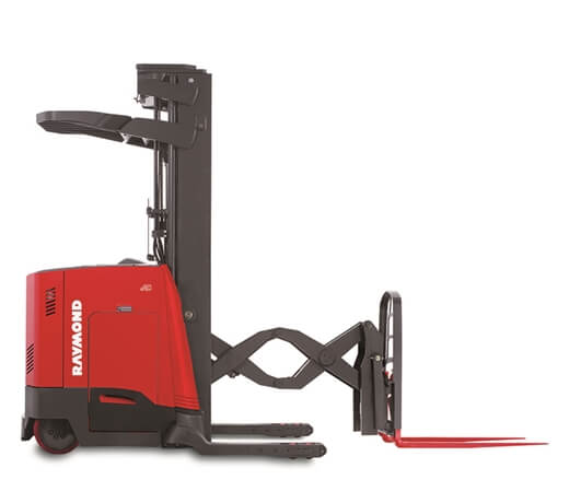 Los Montacargas de Alcance Profundo ahorran dos de cada cinco pasillos contra el almacenamiento de profundidad única, lo que permite el almacenamiento de doble profundidad de tarimas en los racks para una mayor densidad de almacenamiento. Los Montacargas Raymond de doble profundidad están disponibles con diferentes opciones de compartiento de batería – Postura universal, posición de lado y hombre sentado.